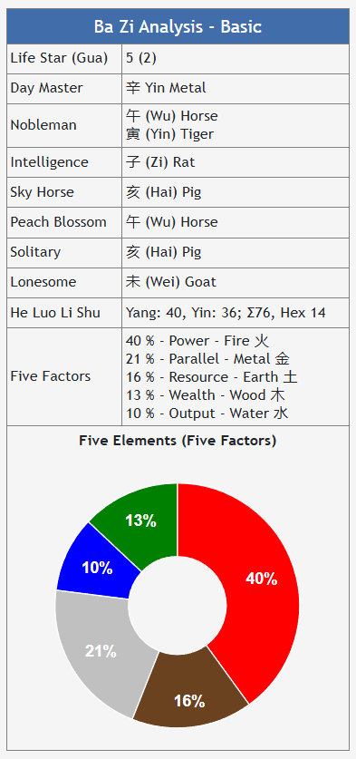 – Pilier du jour : se concentre sur la personnalité fondamentale de l’individu et sur sa relation avec son conjoint.
